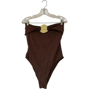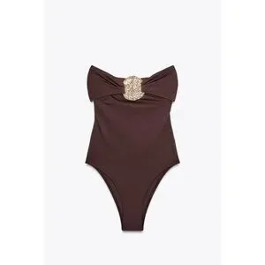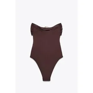 Zara Womens Swimsuit Large Brown Metal Draped Bandeau One Piece 0167/217 NWT