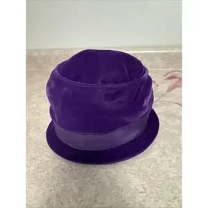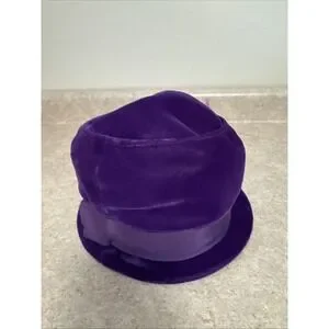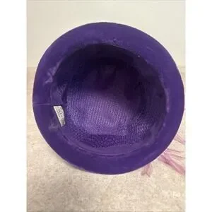 This vintage 1950s purple velvet feather hat is a unique piece of mid-century glam fashion. Made in the USA by the ILGWU (Union Made), this tailored hat exudes a special occasion elegance with its original design and high-quality material. Perfect for adding a touch of vintage flair to any outfit, this hat in size M is a must-have accessory for those who appreciate retro style and craftsmanship.