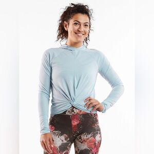 Elevate your workout or trail run with this vibrant Title Nine Cyclone Training Hoodie. Known for its performance-driven design and flattering silhouette, this piece features a stylish twist-front detail and a slightly cropped, dropped hem that pairs perfectly with high-waisted leggings.