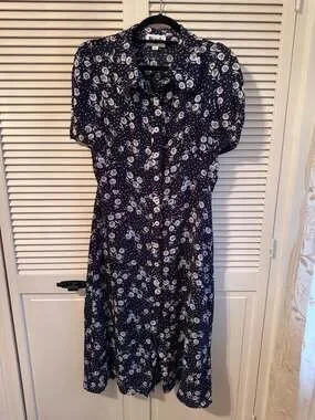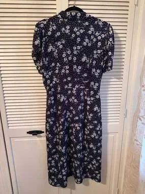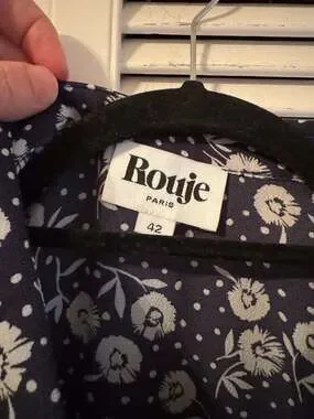 Rouje Paris Gabinette Navy Blue Floral Dandelion Button Front Midi Dress Size 42