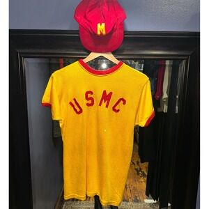 1950s–60s USMC Durene Cotton Ringer Tee & Cap Set Marine Corps Yellow Red Large