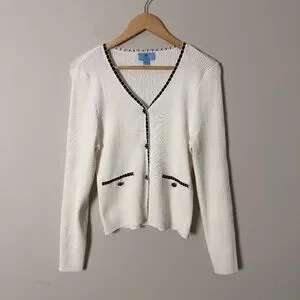 2/$30 Cece Ribbed Cream Beaded Button Cardigan Large