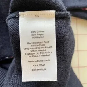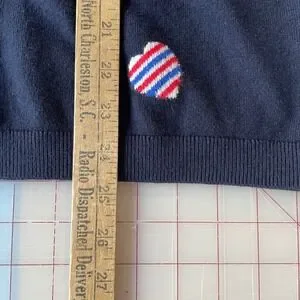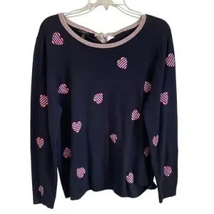 Keywords: Talbots, Heart Sweater, Knit Top, Long Sleeve, Petite Large, Navy Sweater, Tie Back Sweater, Striped Heart, Crew Neck Sweater, Women's Sweater, Cotton Blend Sweater, Casual Sweater, Red White Blue, Patriotic Sweater