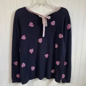 Talbots Patriotic Heart Print Sweater Tie Back Long Sleeve Knit Top Petite Large