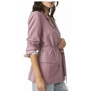 So cool and classic, this timeless blazer is featured in a staple silhouette and luxe linen fabrication with defined shoulders and waist tie detail for added shape.