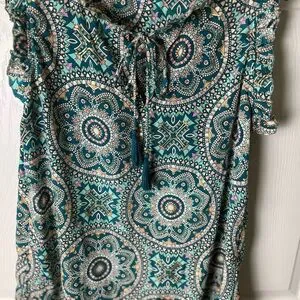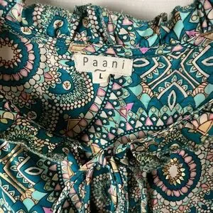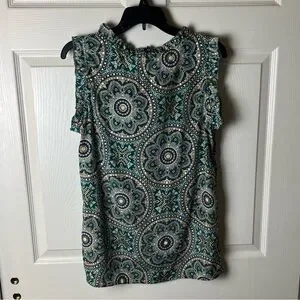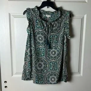 Teal Medallion Ruffle Tie-Neck Sleeveless top