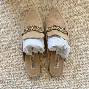 Steve Madden Beige Chain Accent Mules