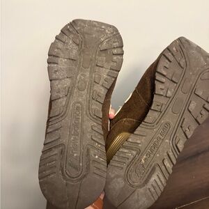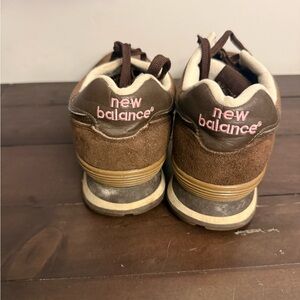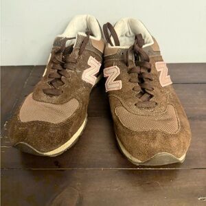 New Balance 574 Brown Suede Pink Logo Sneakers Women’s Size 9 Classic Retro
