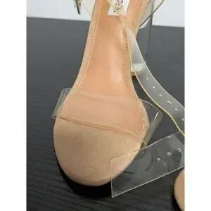 Steve Madden Camille Ankle Strap High Block Lucite Heeled Sandal Clear Sz 6