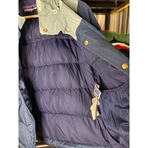 Patagonia Kids Down Puffer Jacket Blue Colorblock Hooded Coat Size M 10
