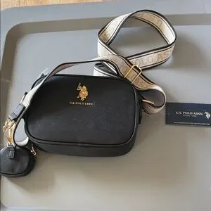 U.S. Polo Assn. Black Crossbody Bag with Ivory Logo Strap