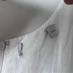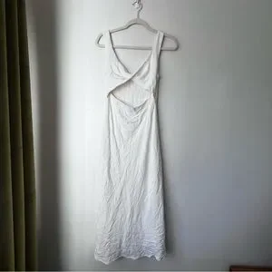 Petal & Pup White Apollo Twist Front Cut Out Midi Dress 2. midi length. v neckline. bust twist detail with cut out feature. hook and eye clasp. invisible back zip. lined. pit to pit 14.5", waist is 13" across, length 50". Brand tag has been removed.