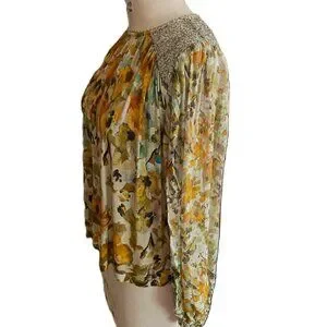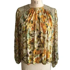 Anthropologie Blank London Sequin Sheer Metallic Puff Sleeve Blouse.