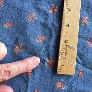 This is such a pretty French country-style cotton tablecloth from Williams Sonoma. It’s got the Provencal vibes, with a floral border and butterflies in the middle. It’s a very big round tablecloth from the 1990’s. It has one run/flaw in the center that is pointed out in the photographs. It’s great for a big family meal or even you could use the fabric to make something else.