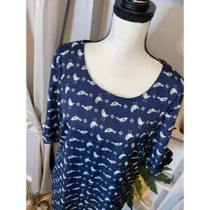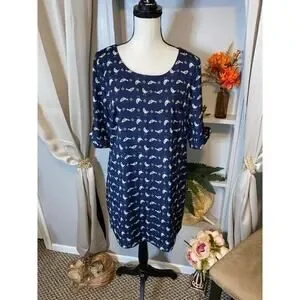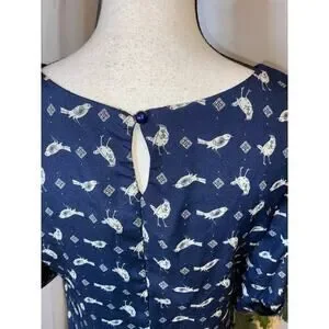 Lily Rose size Medium GUC Blue GUC Lined Dress with Birds Button Closure