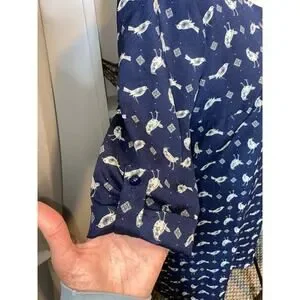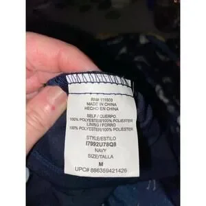 Please view material tag/care tag pics (if available on this item). Some items may be wrinkled, due to being stored in a tote prior to pictures. If an item is oversized on my display, I may have to pin it with a clothespin for picture purposes to properly photograph.