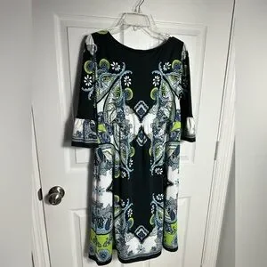 Cute babydoll style dress with bell sleeves. Bright paisley print .please see last photo small thread flaw .