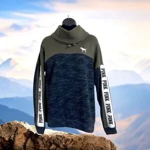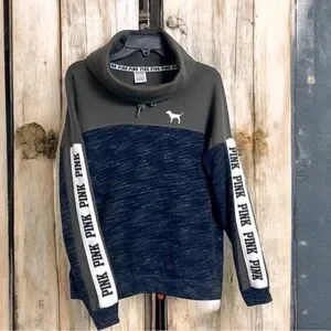 Victoria’s Secret Pink Sweatshirt Cowl Neck Long Sleeve Logo Drawstring Pullover