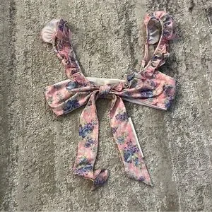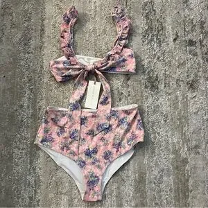 New with tags, never worn. LoveShackFancy Pink Garden Bikini. Palm Bikini Top size small + Mason Bikini Bottom size medium.