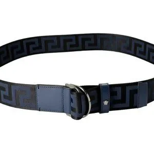 This is authentic Versace Leather Trimmed Greeca Print Belt