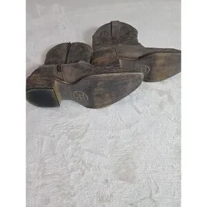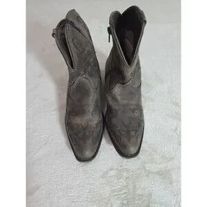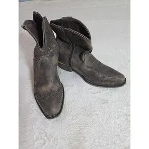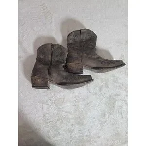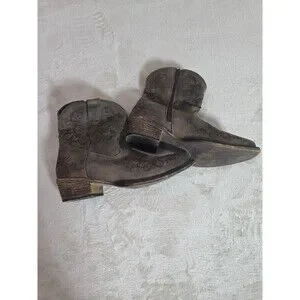 Roper Boots Women’s 6.5 Short Stuff Western Embroidery Snip Toe Brown Zip Ankle