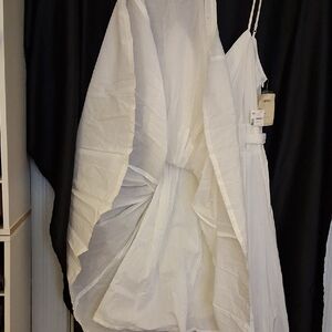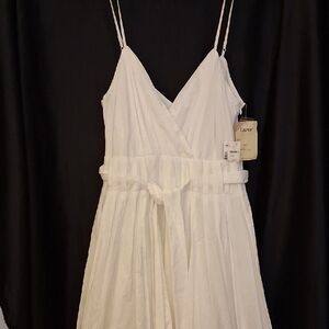 Timeless and elegant white strap belted dress by Lapis wirh a wide skirt and undeskirt. Simple and elegant.