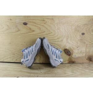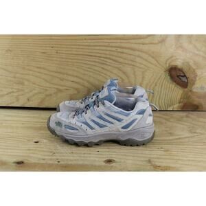 Stylish and durable athletic shoes. Features a gray base with blue accents. Perfect for outdoor activities.