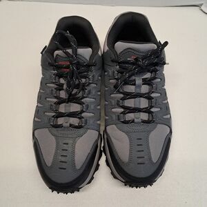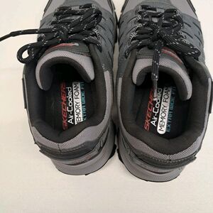 The Skechers Men's Equalizer 5.0 Trail Solix Trainers in size 9.5 are designed for maximum comfort and performance. These lace-up trainers feature a relaxed fit design with a roomy comfortable feel, making them ideal for all seasons. With a durable rubber sole and medium fit, these black and gray trainers are perfect for walking, school, driving, and hiking activities. The leather and textile upper, along with a foam insole, ensures both style and comfort for everyday wear. Made by Skechers, a trusted brand known for quality athletic shoes, these trainers are a great addition to any man's footwear collection.