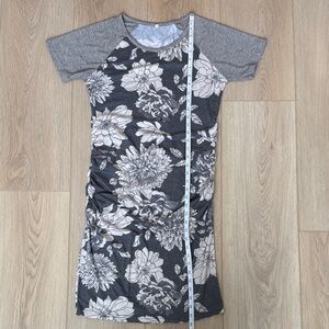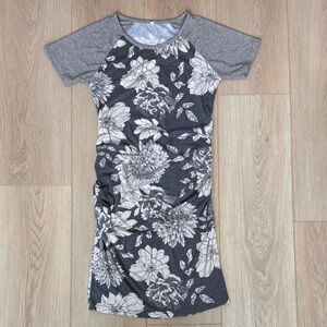 PinkBlush Floral Gray Raglan Short Sleeve Maternity T-Shirt Bodycon Midi Dress