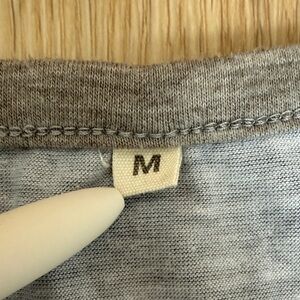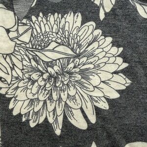 Casual maternity sundress in a grey floral pattern. Heather gray raglan style short sleeves, crew neck, and bodycon fit. Midi length that hits around the knee. This was one of my go-to maternity outfits with a denim jacket. :)