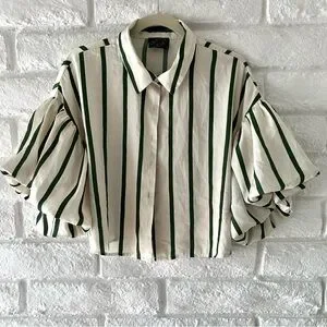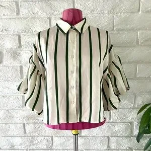 Elegant Milk & Honey Striped Button Down Blouse Puffy Sleeves