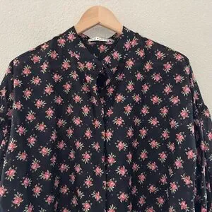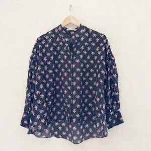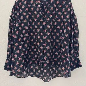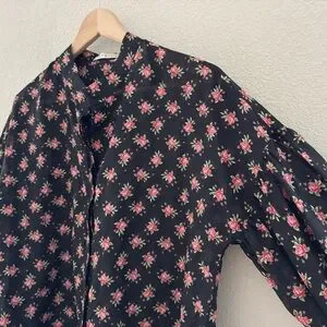 Alice + Olivia Paulita Top Med Black Pink Floral Cotton Silk Designer Feminine