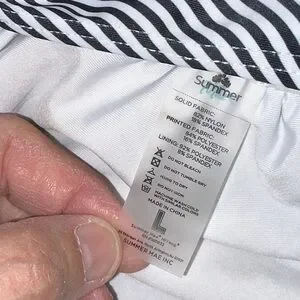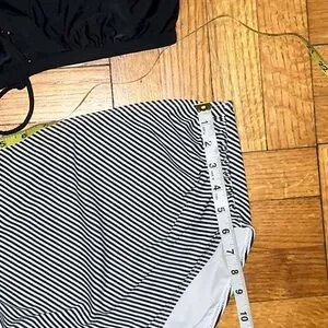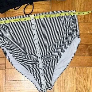 Summer Mae Bikini. Size Large. Black top, Black and White striped bottom. Top features ruffled straps and ties at the back. Top has removable pads. Bottoms are high rise. In great condition!