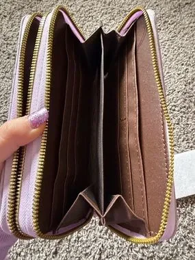 Butterfly-Embossed Double Zip Wallet - Lavender