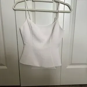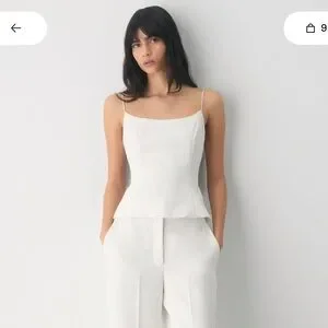 Chic white blouse with a sleek design. Features a flattering fit and thin straps. Ideal for stylish occasions.
