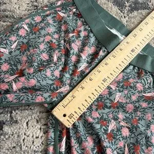Matching baselayer top and leggings with an allover floral pattern. Soft pink blooms on a muted green background. Fitted, stretchy fabric for layering. Breathable and designed for movement.
