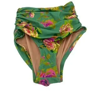 New J. Crew Green Floral Ruched High Waist Bikini Swim Bathing Suit Bottom XXS