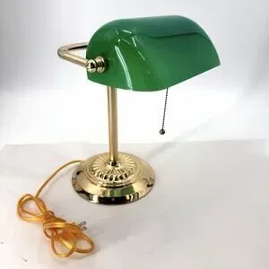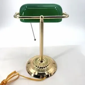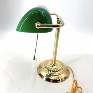 Vintage Banker's Desk Piano Lamp Green Glass Shade Pull Chain Gold Metal Base
