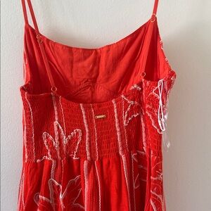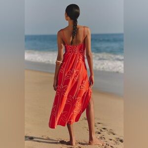 Easy and breezy, the Maaji Lupine Dress is a lightweright linen midi complete with delicate embroidery, built-in underwire cups, and a smocked back.