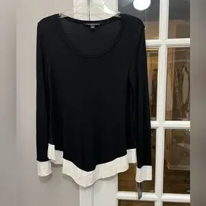 International Concepts NWT black and white tunic top with handkerchief, hem, crewneck, long sleeves, lightweight size S