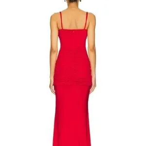Chic red maxi dress with ruched detailing. Spaghetti straps and elegant drape. Ideal for evening events. Worn only once for a few hours. Non smoker/smoke free home.