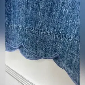 Chic blue jean shorts with scalloped hem. Perfect for everyday wear.