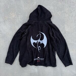 Marvel Iron Fist Dragon Hoodie Mens M Black Y2K Grunge Gothic NETFLIX EXCLUSIVE