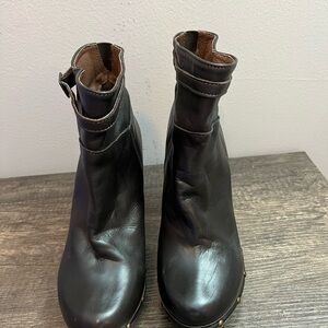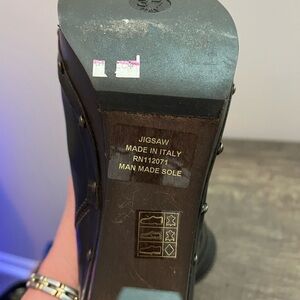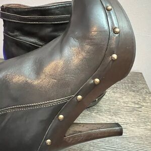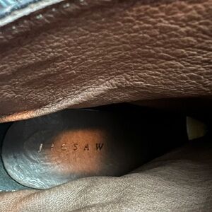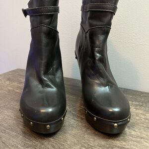 Gorgeous brown leather heeled boot made in Italy. Jigsaw is a high end British label. 4” heels with platform. Stud detail and buckle detail. Soft leather, beautiful quality - don’t look like they have been worn - last price tag $340.