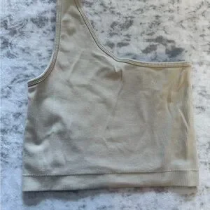 Stylish one-shoulder tank top. Ribbed texture. Perfect for casual or athletic wear