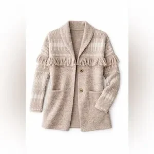 Heartloom Fringe Knit Jacket Cardigan Neutral Boho Size M NWT