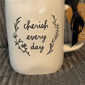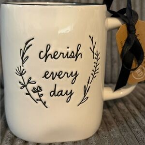 Rae Dunn ‘Cherish Every Day’ White & Black Ceramic Mug- NWT