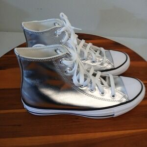 Converse Chuck Taylor All Star Hi Womens 9.5 Metallic Silver Shoes A14875C