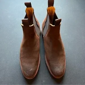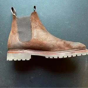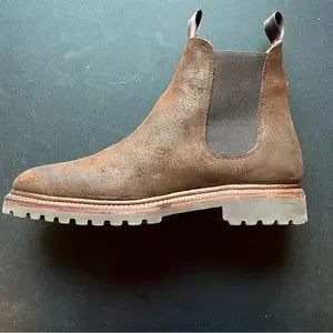These are factory second boots. The only defect in the boot is that the stitching is coming off at a small portion on the back of one boot. It should be an easy fix for a cobbler. These have been my winter boots, so I haven’t had a chance to fix them. Being chelsea boots they are easy to put on. They are rugged as well as stylish; hence they replaced my regular winter boots other than when it snowed heavily. The waxy commander leather repels water and the nap is revealed over time resulting in excellent patina. The boots have developed a great patina already. You can rewax them if you want a less nappy look. I am only letting then go as they are half a size too small for me. Theya are a US Men's 6.5 and Women's 8 according to the Meermin website.