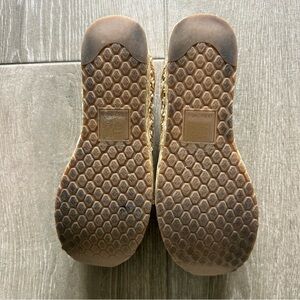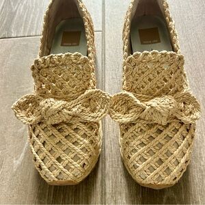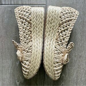 Stylish woven loafers in beige with a decorative bow. Perfect for casual outings. Worn once!